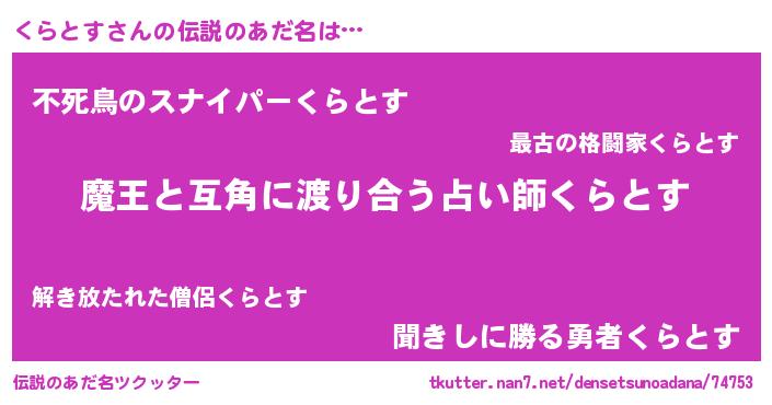 | 女子向けラノベタイトル風あだ名 | 『くらとす恋絵巻』『くらとすの契約王妃』 |
