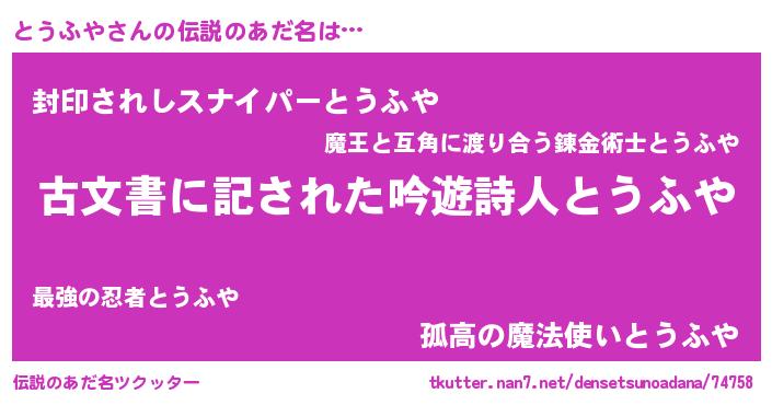| ヘコむあだ名 | 『とうふや(笑)』『とうもー』 |