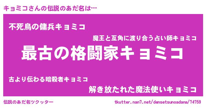 | ヒーロー風カッコイイあだ名 | 『ウルトラキョミコマン』『仮面キョダー』 |