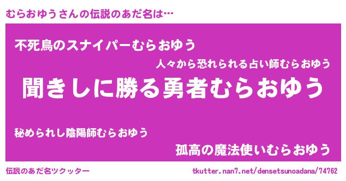 | 男性向けラノベタイトル風あだ名 | 『むらおゆうという概念が存在しない退屈な世界 』 |