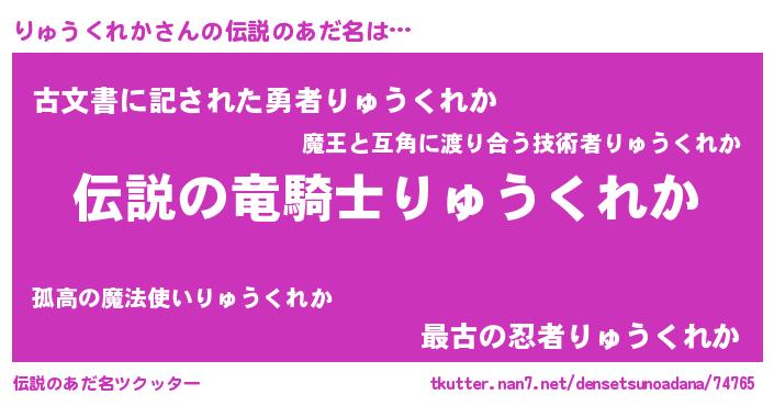 | 女子向けラノベタイトル風あだ名 | 『(仮)りゅうくれかのやんごとなき事情』 |