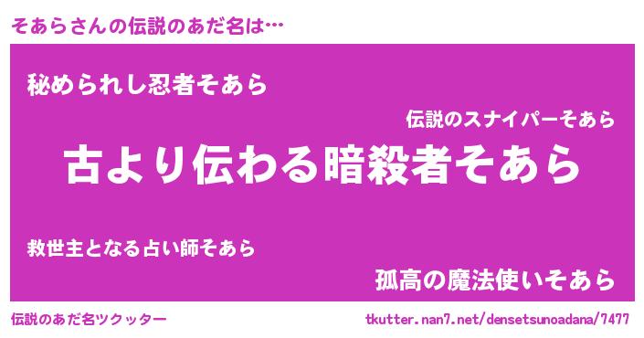 | 意味不明あだ名 | 『永久保存そあら』『そあらフォーエバー』 |