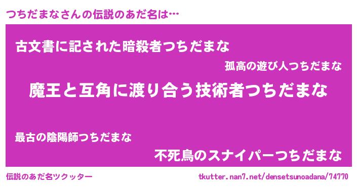 | 男性向けラノベタイトル風あだ名 | 『この素晴らしい世界につちだまなを!』 |