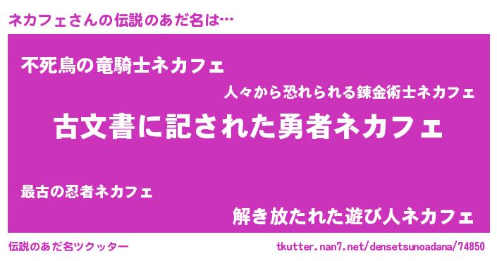 | 意味不明あだ名 | 『自称ネカフェ』『永久保存ネカフェ』 |