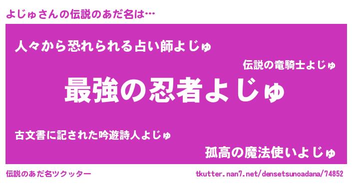 | 胡散臭い通販商品みたいなあだ名 | 『運命の人と巡り会える高級そうな壺…その名も「よじゅ」』 |