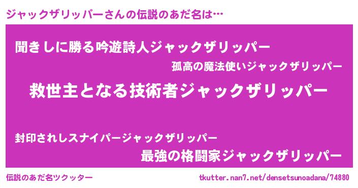 | ヒーロー風カッコイイあだ名 | 『天空の使者ジャックザリッパー』 |