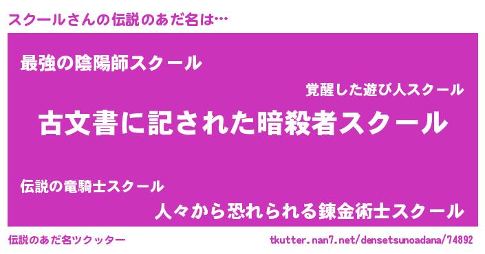 | 意味不明あだ名 | 『永久保存スクール』『自称スクール』 |