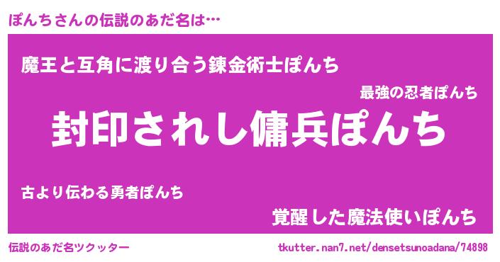 | 男性向けラノベタイトル風あだ名 | 『Re:ぽんちから始める異世界生活』 |