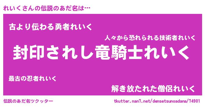 | 恥ずかしいあだ名 | 『プリティーれいく』『れいちん』 |
