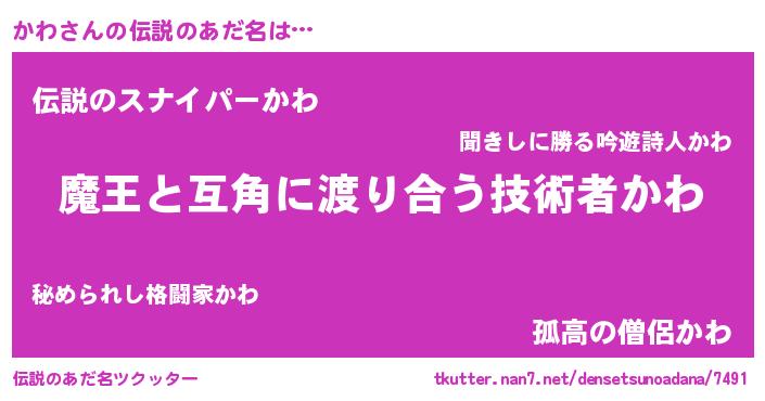 | 女子向けラノベタイトル風あだ名 | 『かわ恋絵巻』『かわ姫と円卓の騎士』 |
