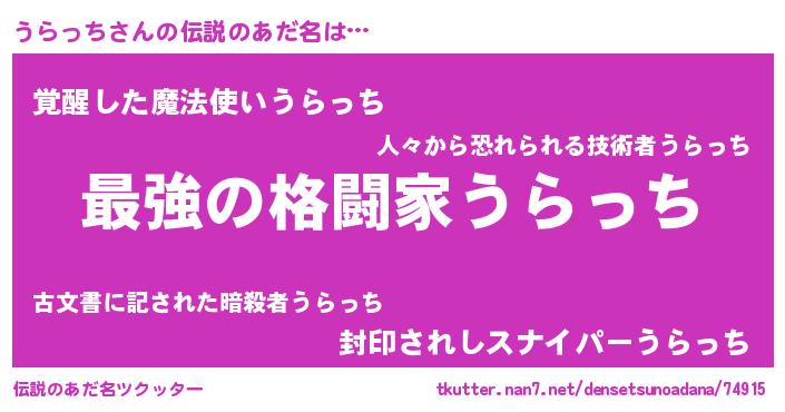 | ヒーロー風カッコイイあだ名 | 『ウルトラうらっちマン』『炎刃騎士ウラ』 |