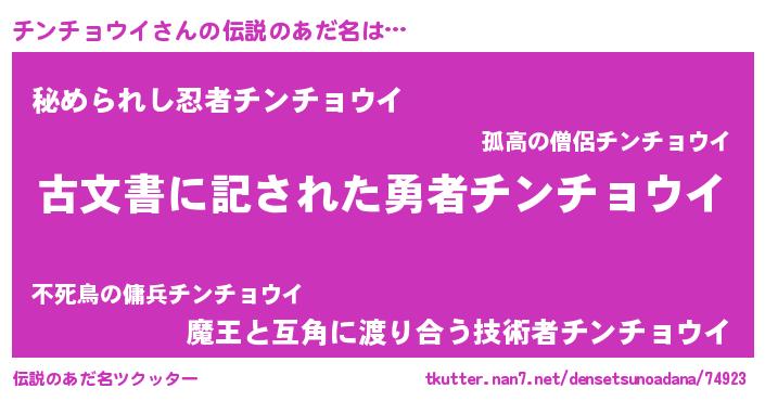 | ヒーロー風カッコイイあだ名 | 『ネオチンチョウイ』『仮面チンダー』 |