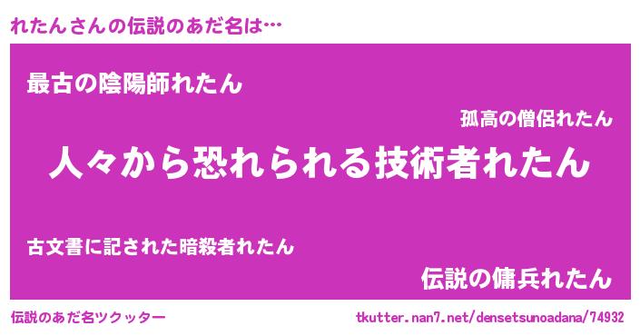 | 男性向けラノベタイトル風あだ名 | 『レタンスレイヤー』『魔弾の王とれたん』 |