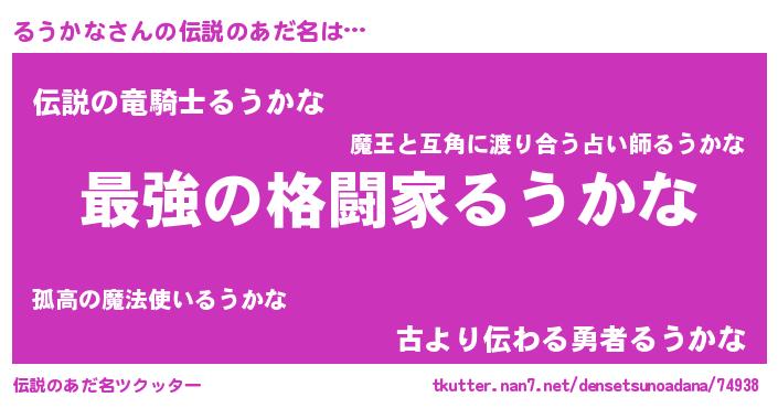 | ヒーロー風カッコイイあだ名 | 『ウルトラるうかなマン』『ネオルウカナ』 |