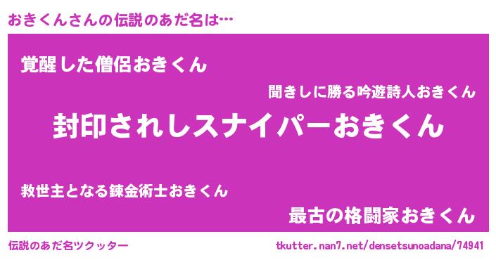 | 男性向けラノベタイトル風あだ名 | 『オキクンアートオンライン』 |
