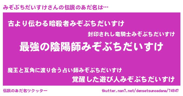| 意味不明あだ名 | 『自称みぞぶちだいすけ』 |