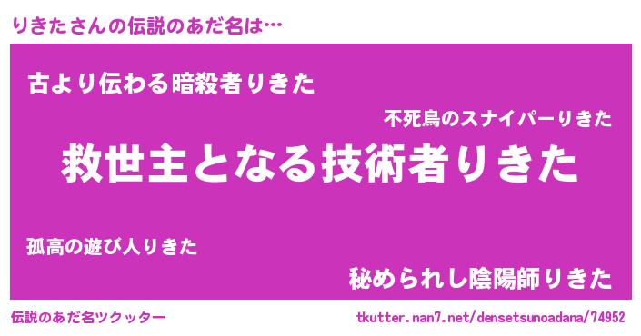 | 意味不明あだ名 | 『眠気覚ましガムりきた味』『自称りきた』 |