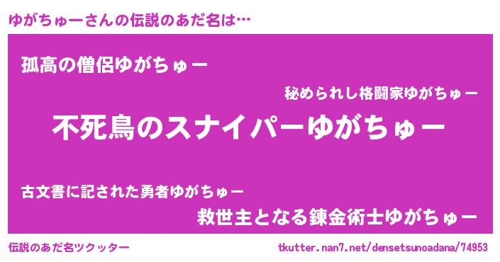 | 意味不明あだ名 | 『ペロリンゆがちゅー』『自称ゆがちゅー』 |
