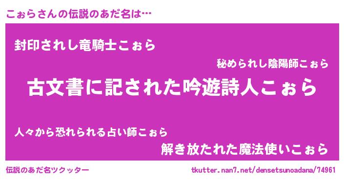 | ヒーロー風カッコイイあだ名 | 『ネオコォラ』『スーパーコォラ』 |