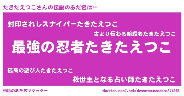 | 意味不明あだ名 | 『たきたえつこフォーエバー』 |