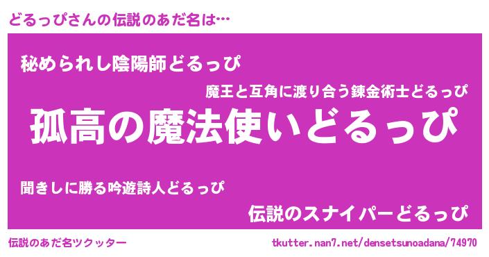 | 胡散臭い通販商品みたいなあだ名 | 『信頼と実績のサプリメント…その名も「どるっぴ」』 |