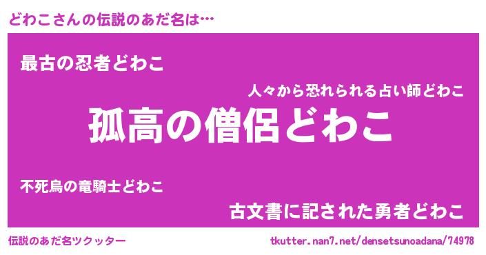 | ヒーロー風カッコイイあだ名 | 『黄金騎士ドワ』『ウルトラどわこマン』 |