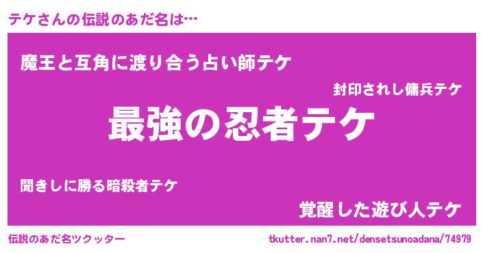 | ヒーロー風カッコイイあだ名 | 『究極戦士テケ』『ウルトラテケマン』 |