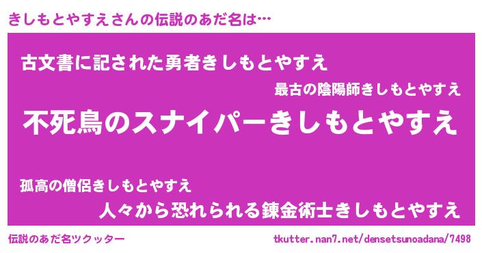 | 胡散臭い通販商品みたいなあだ名 | 『モテモテ間違いなし霊験あらたかなお札…その名も「きしもとやすえ」』 |