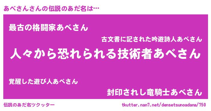 | 意味不明あだ名 | 『住所不定無職あべさん(12歳)』 |