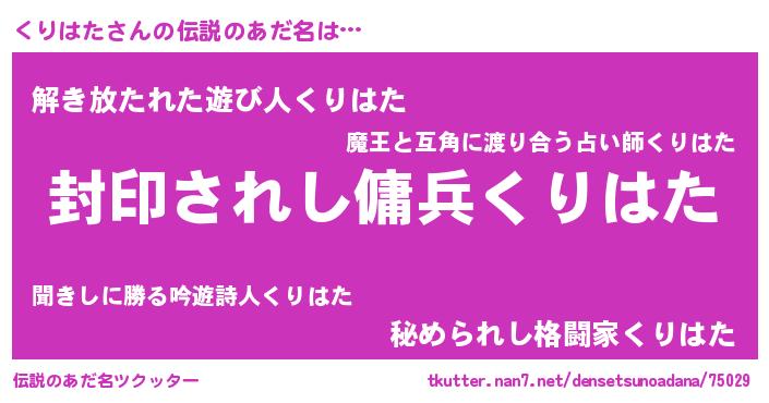 | 男性向けラノベタイトル風あだ名 | 『クリハタアートオンライン』 |
