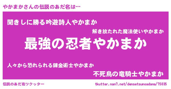 | ヒーロー風カッコイイあだ名 | 『ウルトラやかまかマン』『仮面ヤカダー』 |