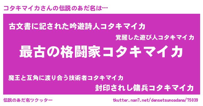 | ファンタジー風あだ名 | 『エターナルコタキマイカー』 |