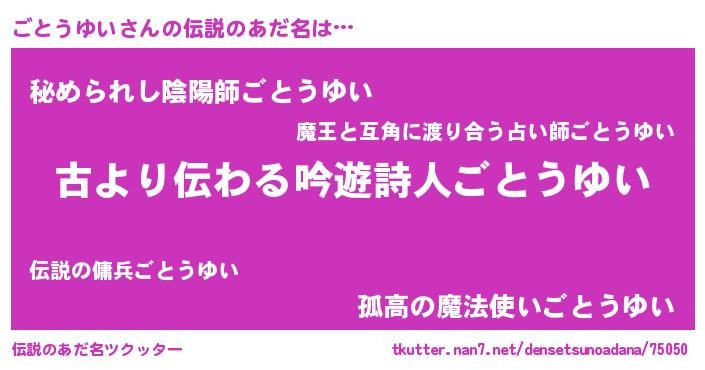 | 意味不明あだ名 | 『永久保存ごとうゆい』 |