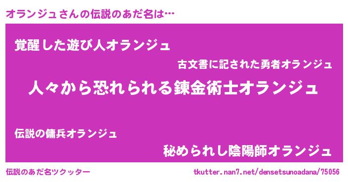 | ヒーロー風カッコイイあだ名 | 『仮面オラダー』『究極戦士オランジュ』 |