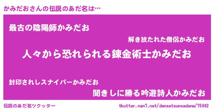 | ヒーロー風カッコイイあだ名 | 『正義の使者かみだお』『ネオカミダオ』 |