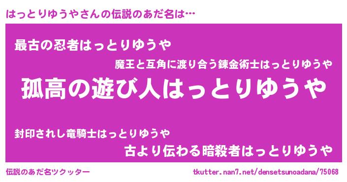 | 意味不明あだ名 | 『自称はっとりゆうや』 |