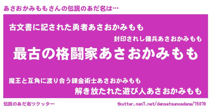 | ファンタジー風あだ名 | 『エターナルアサオカミモモー』 |