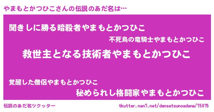 | 男性向けラノベタイトル風あだ名 | 『ノーゲーム・ノーヤマモトカツヒコ』 |