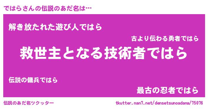 | 胡散臭い通販商品みたいなあだ名 | 『芸能人もオススメする高麗人参…その名も「ではら」』 |