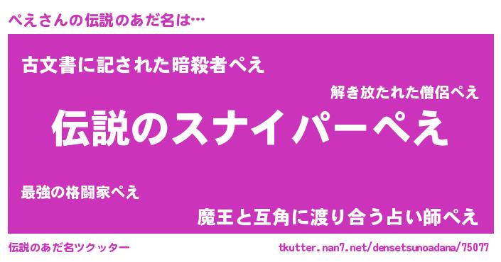 | 胡散臭い通販商品みたいなあだ名 | 『必ず成功する霊験あらたかなお札…その名も「ぺえ」』 |