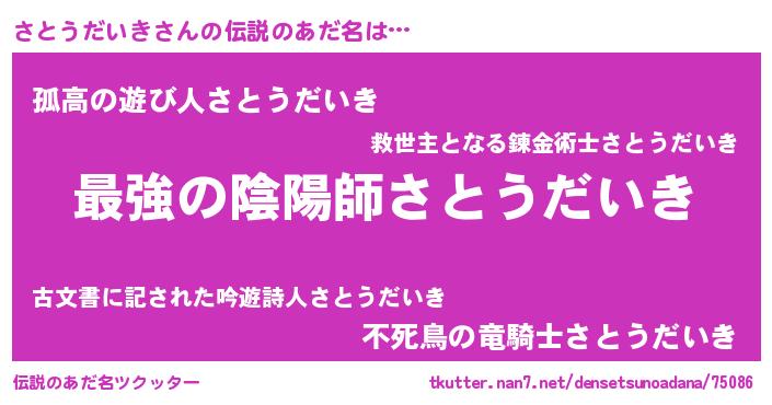 | ポケモン風あだ名 | 『サトウダネ』『ヒサトウダイキ』 |