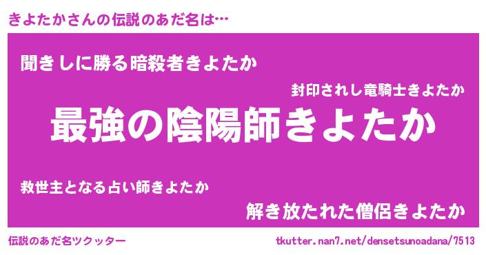 | 男性向けラノベタイトル風あだ名 | 『きよたかに滅ぼされるだけの簡単なお仕事です』 |