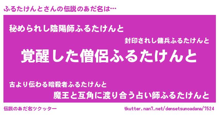 | 男性向けラノベタイトル風あだ名 | 『ふるたけんとの嫁は女の子じゃないと思った?』 |