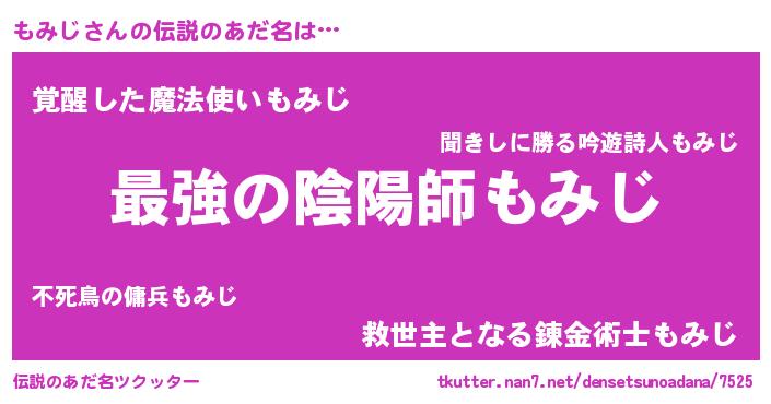 | 男性向けラノベタイトル風あだ名 | 『Re:もみじから始める異世界生活』 |