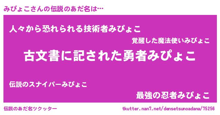 | 意味不明あだ名 | 『永久保存みぴょこ』『自称みぴょこ』 |