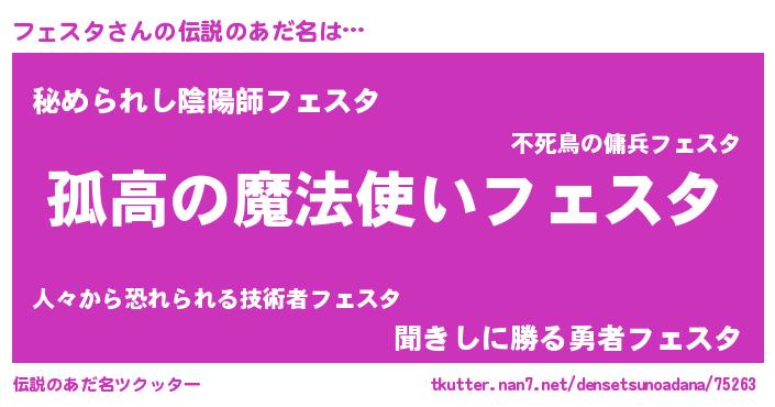 | 男性向けラノベタイトル風あだ名 | 『緋弾のフェスタ』『魔弾の王とフェスタ』 |