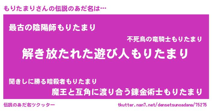 | 意味不明あだ名 | 『自称もりたまり』 |