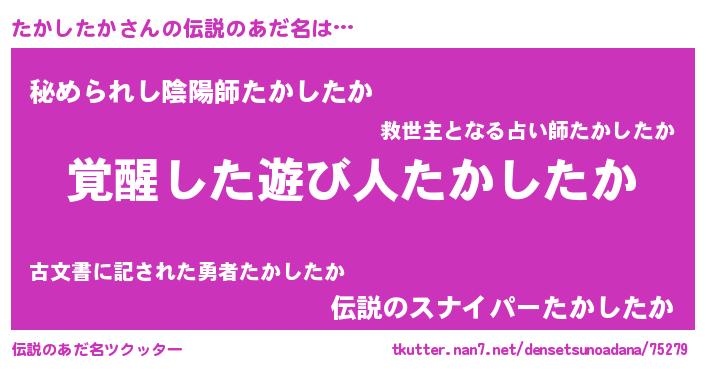 | 胡散臭い通販商品みたいなあだ名 | 『あなたにだけ特別に提供する世界で10本だけ現存している希少なブランデー…その名も「たかしたか」』 |