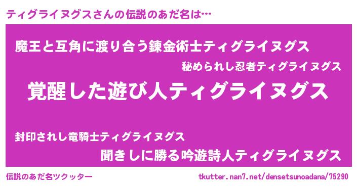 | 男性向けラノベタイトル風あだ名 | 『ティグライヌグスの嫁は女の子じゃないと思った?』 |