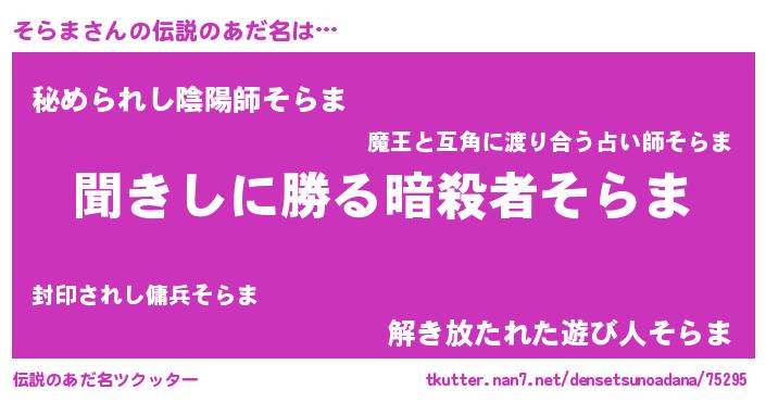 | 男性向けラノベタイトル風あだ名 | 『そらまという概念が存在しない退屈な世界 』 |